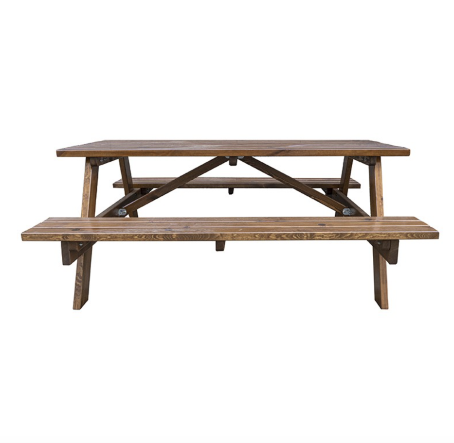 Mesa fabricada en madera de pino norte con tratamiento en autoclave (clase IV) según UNE335. Posibilidad de acabado en lasur.